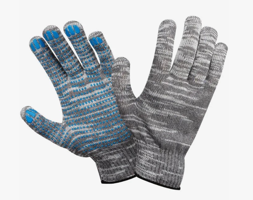 Такие перчатки предназначены для защиты рук от мелких механических повреждений и общих производственных загрязнений. Некоторые области применения: складские, садовые и ремонтные работы; производство, работа с деревом, металлом, стеклом; сельское хозяйство; быт. Перчатки изготовлены из хлопчатобумажной пряжи с покрытием из поливинилхлорида. Покрытие помогает обеспечить плотный захват и предотвращает соскальзывание детали. Перчатки безразмерные, с манжетой на резинке, что обеспечивает плотное прилегание к руке.