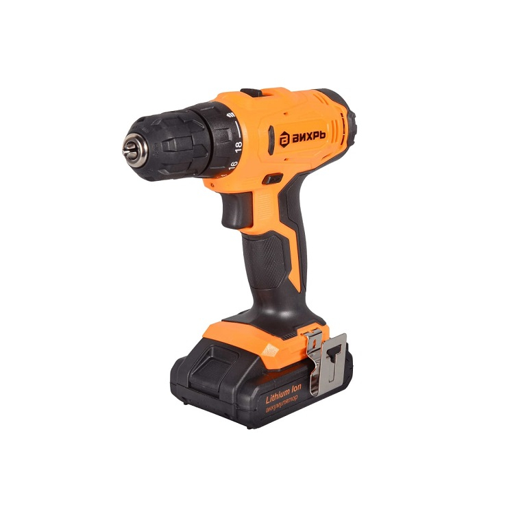 Дрель-шуруповерт ВИХРЬ ДА-18Л-2КС будет полезен при необходимости сверления отверстий, установке крепежа.Инструмент работает автономно от литий-ионного аккумулятора емкостью 2 А*ч. Наличие запасного аккумулятора предполагает длительную эксплуатацию без перерыва на зарядку. Отсоединение производится посредством нажатия кнопки (слайдер). Устройство можно использовать в 2 режимах: сверления и закручивания/откручивания крепежных элементов. Режим работы и оснастка подбираются в зависимости от стоящей задачи. Благодаря наличию быстрозажимного патрона бита или сверло фиксируется в держателе, что экономит время, исключает раскручивание в процессе работы и делает устройство более компактным. Одним из преимуществ модели является наличие быстросъемного патрона, это позволяет совершать работы в труднодоступных местах. Наличие реверсного хода облегчает задачу по извлечению застрявшего сверла, выкручиванию болтов. Дрель-шуруповерт подходит для работы с деревом, металлом, пластиком. С ее помощью можно сделать отверстия в дереве размером до 30 мм, в металле – до 12 мм. Переключатель направления вращения, установленный в среднее положение, выступает в роли блокиратора для предотвращения случайного включения двигателя.Удобная, эффективная, легкая и компактная модель ВИХРЬ ДА-18Л-2КС обеспечит длительность автономных работ на любом объекте, пригодится в квартире, на даче, стройплощадке.