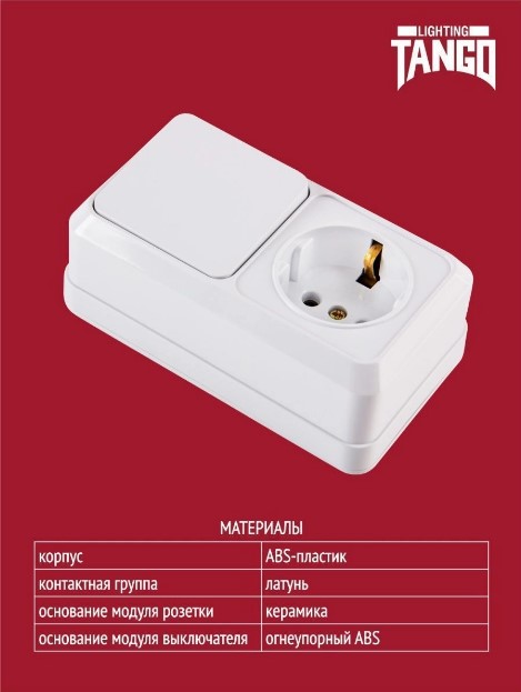 Блок комб. ОП гориз (1кл. выкл + розетка с/з) TANGO