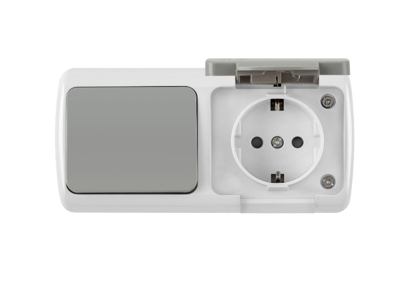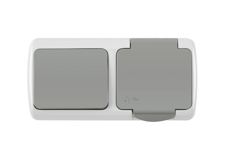 Блок розетка с/з с крышкой + 1 кл выключатель серый ОП, IP54 VKL electric