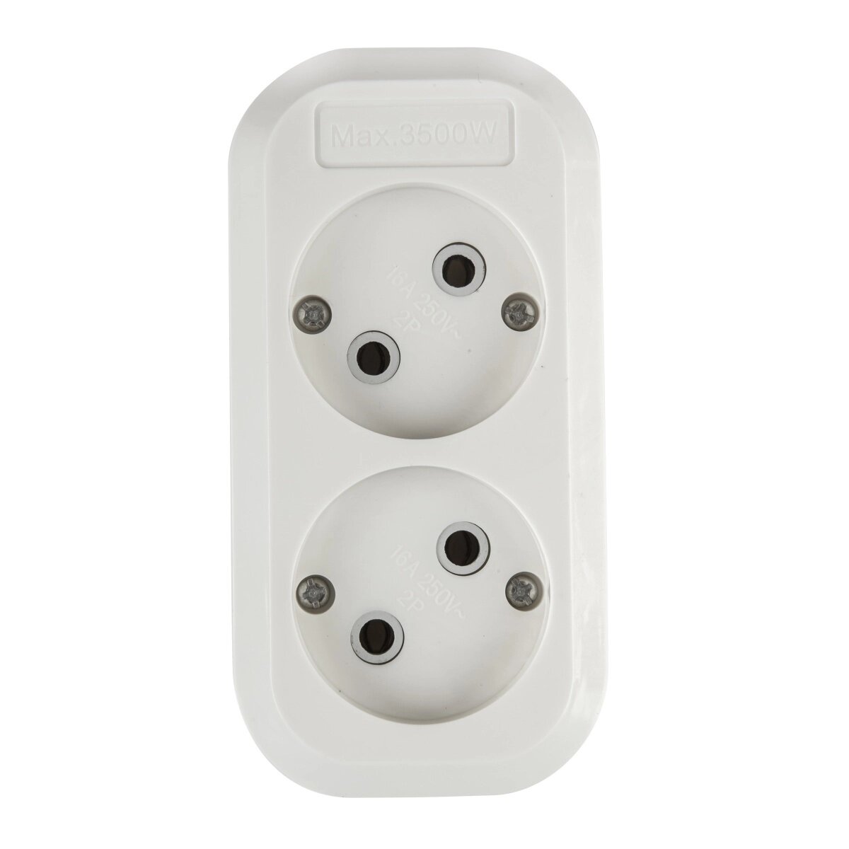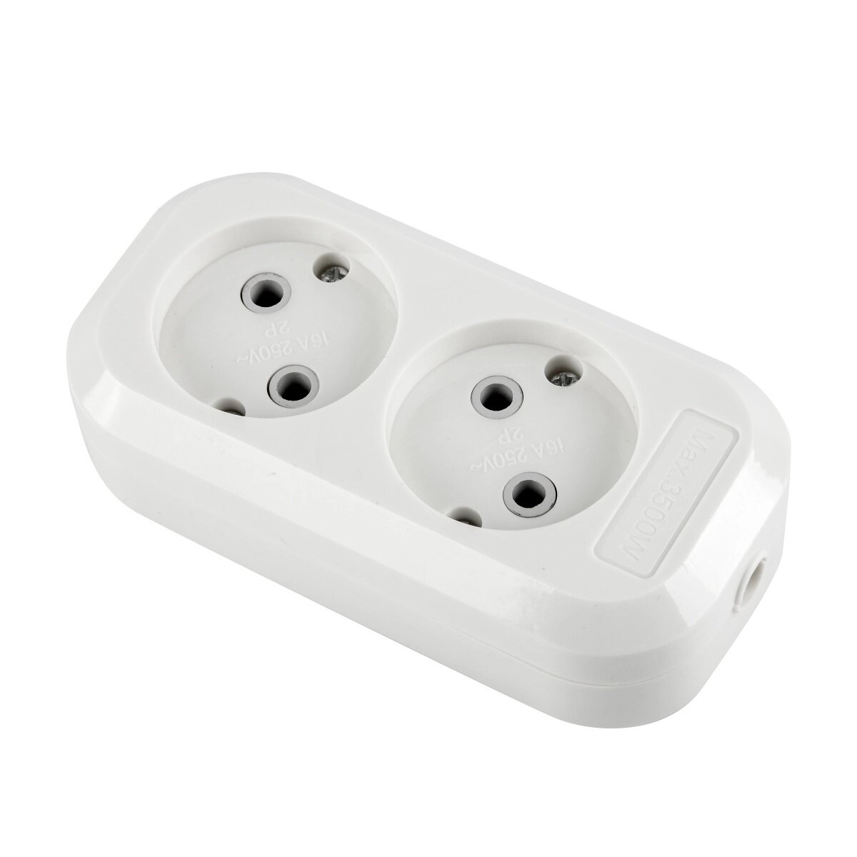 Колодка 2 гнезда без заземляющего контакта Напряжение: 220/250 В. Частота: 50-60 Гц. Номинальный ток: 16 А. Материал корпуса: огнеупорный ABS-пластик. Материал контактных групп: латунь. Степень защиты: IP20