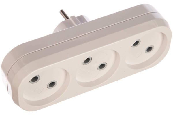 Разветвитель 3 гнезда без заземл. плоский 10А позволяет подключить одновременно 3 электроприбора в розетку. Изготовлен из негорючего ударопрочного пластика, c глянцевой поверхностью, ярко-белого цвета.