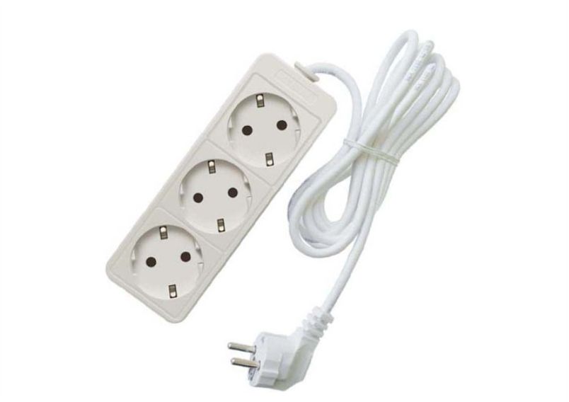 Удлинитель бытовой 16 А, 3 гнезда, с заземляющим контактом, длина шнура 5 м, провод ПВС, цвет белый. Предназначен для подключения электрических приборов, удаленных от стационарных источников электроэнергии.