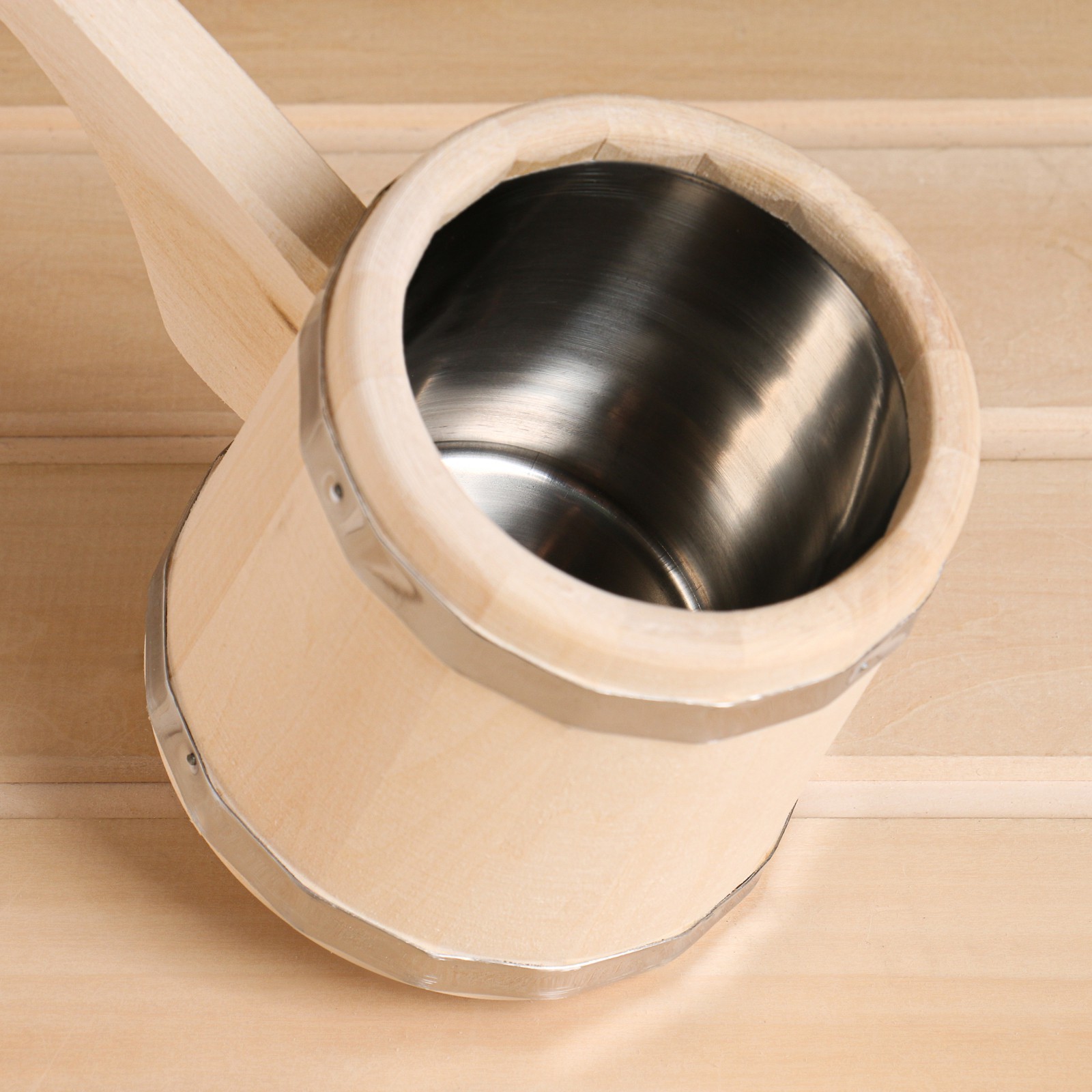 Ковш для бани из липы «Емеля» объёмом 0,5 л и длиной 54 см предназначен для использования в бане или сауне. Некоторые особенности модели: Материал: липа, дерево, нержавеющая сталь. Цвет: бежевый. Дизайн: вдохновлён финскими мотивами, с оригинальными цветами и узорами. Складная конструкция: ковш компактен и удобен для транспортировки. Назначение: подходит для банных ритуалов, например, для запаривания веника с ароматическими маслами, или для других процедур. Комплектация: в комплекте может идти специальная крышка, которая предотвращает попадание пыли и грязи внутрь ковша.