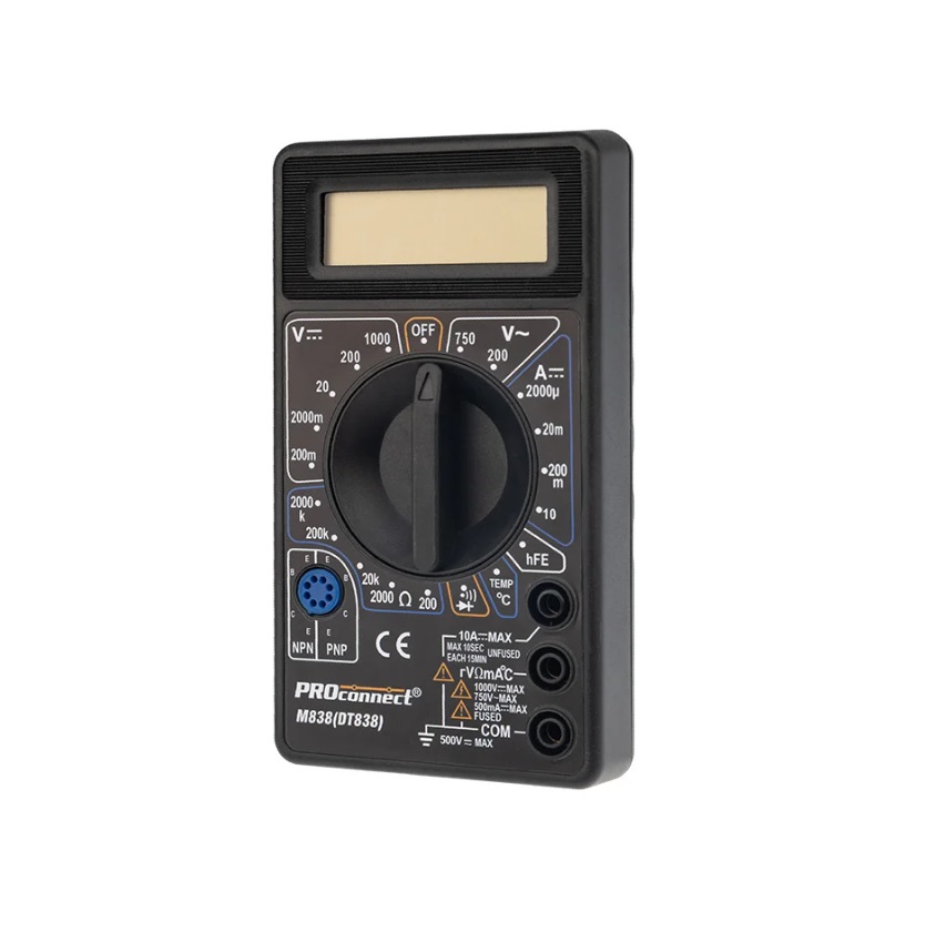 Мультиметр — электроизмерительный прибор, который включает в себя несколько функций и набор измеряемых параметров. Все приборы серии M838 измеряют постоянное и переменное напряжение, постоянный ток, сопротивление в цепи и даже температуру — модель М838. А также с помощью данного прибора можно проводить тестирование диодов. Прибор M838 является портативным мультиметром, компактные размеры позволяют всегда носить его с собой. Но, несмотря на малые размеры, данный мультиметр обладает широким функционалом и это выгодно отличает его от других.