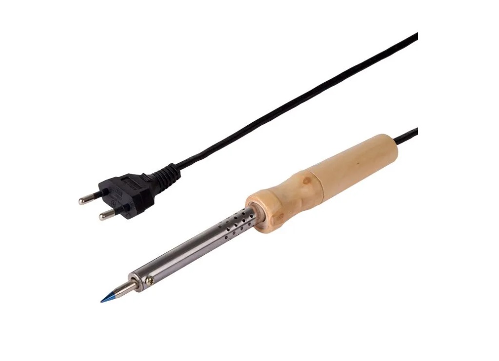 Электрический паяльник с деревянной ручкой и клинообразным жалом непрерывного нагрева предназначен для монтажной пайки и лужения оловянно-свинцовистыми припоями элементов радиоэлектронной аппаратуры и тонкостенных металлических изделий в производственных и бытовых условиях. Перед началом эксплуатации электрического паяльника паяльное жало следует подвергнуть лужению.