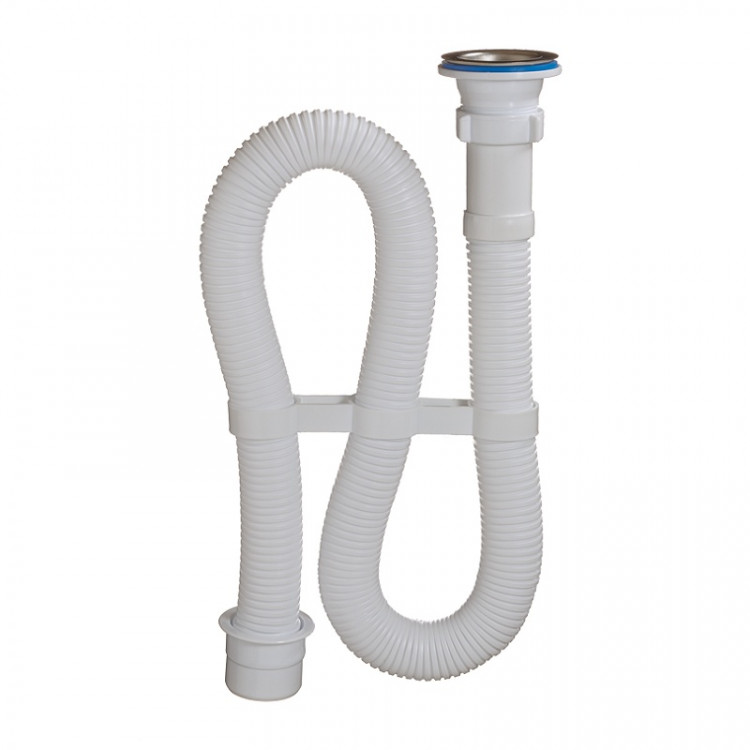 В комплекте идёт полированная нержавеющая чашка д.70мм. Сифон комплектуется нержавеющим винтом длиной 75мм и нержавеющей гайкой. Трёхходовой хомут надёжно держит любой водяной затвор. Диаметр гибкой гофрированной трубы 40мм. Сифон имеет два диаметра подключения к канализации 40 и 50мм.