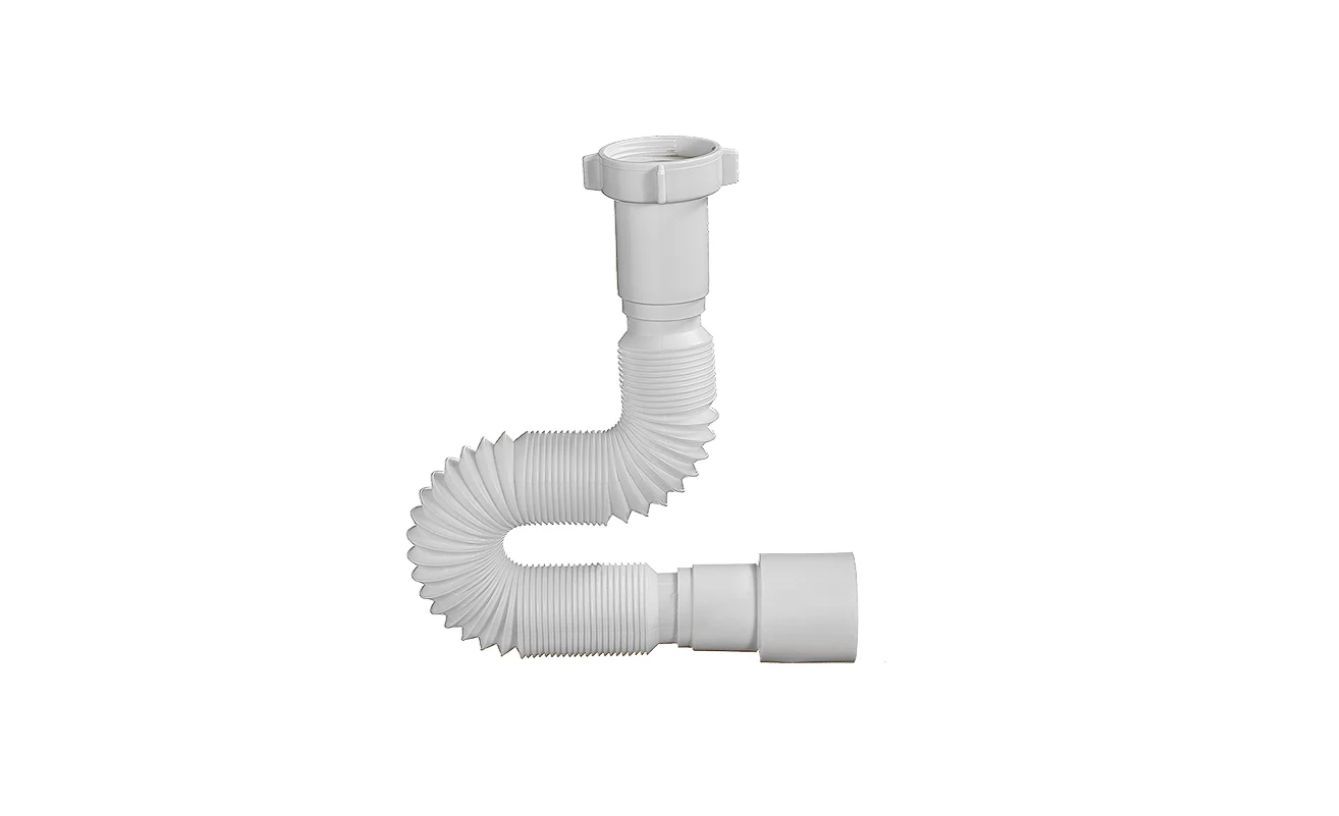 Гибкая труба 1 1/4" х 40 без выпуска, с гайкой с резьбой 1 1/4". Используется для соединения сифона с торцевым выходным соединением с диаметром 32 мм или выпуска с резьбой 1 1/4" и канализации с входом д.40мм. Длина гибкой трубы 320-650мм. Предназначен для организации слива воды.