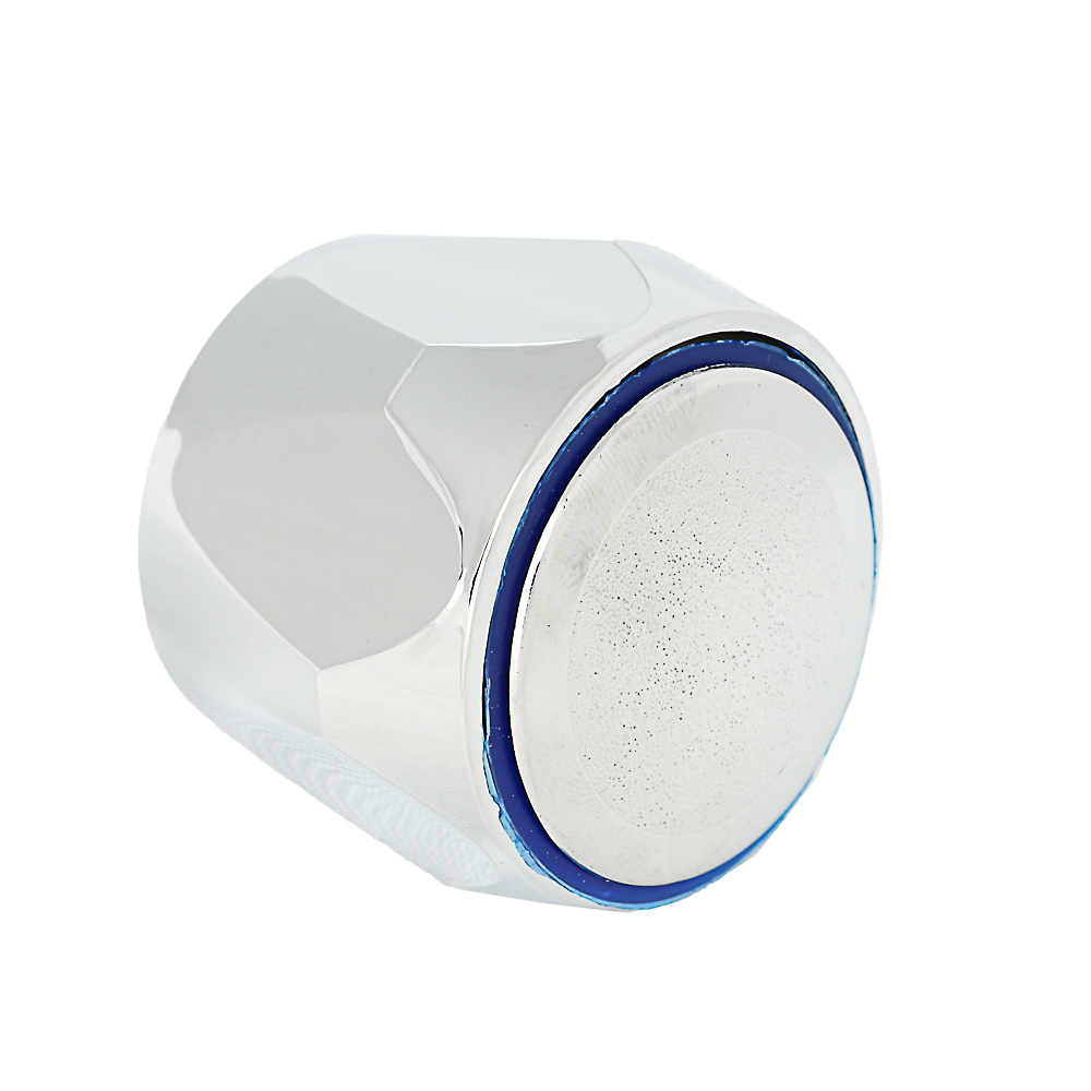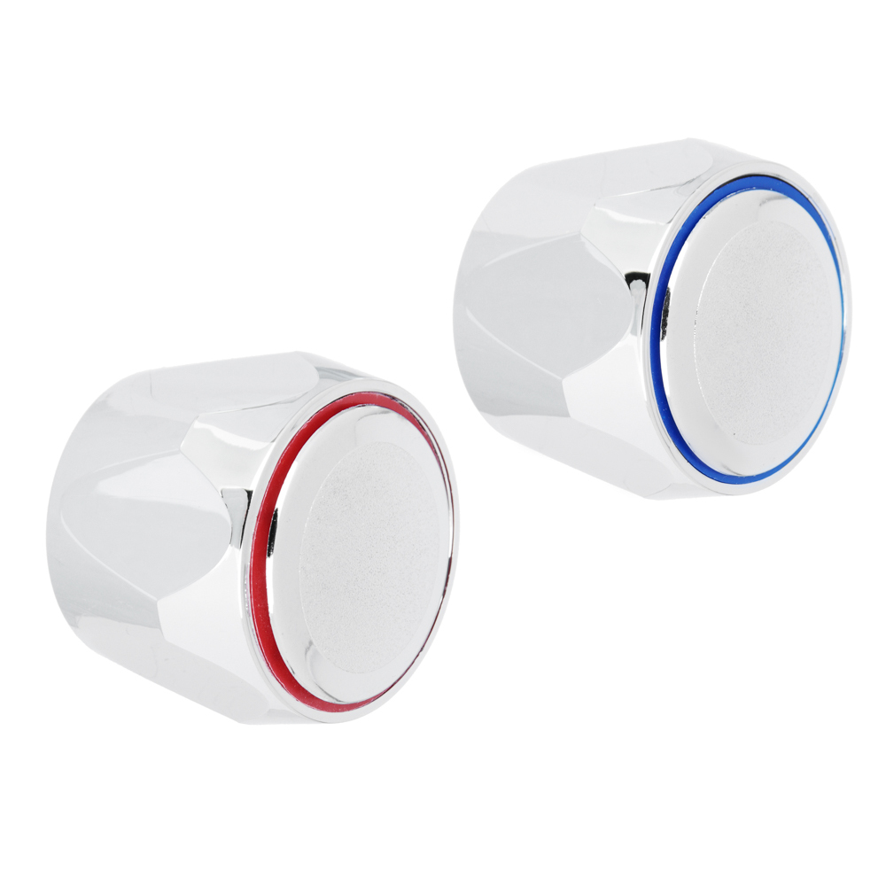 Ручка для смесителя в форме бочонок, 20 шлицов – это запчасть для смесителя вентильного типа. Изготовлена из пластика с покрытием серебряного цвета. Ручка легко устанавливается и надежно фиксируется. Покрытие не подвержено царапинам. Комплект включает 2 типа цветных заглушек для горячей (красная) и холодной (синяя) воды.
