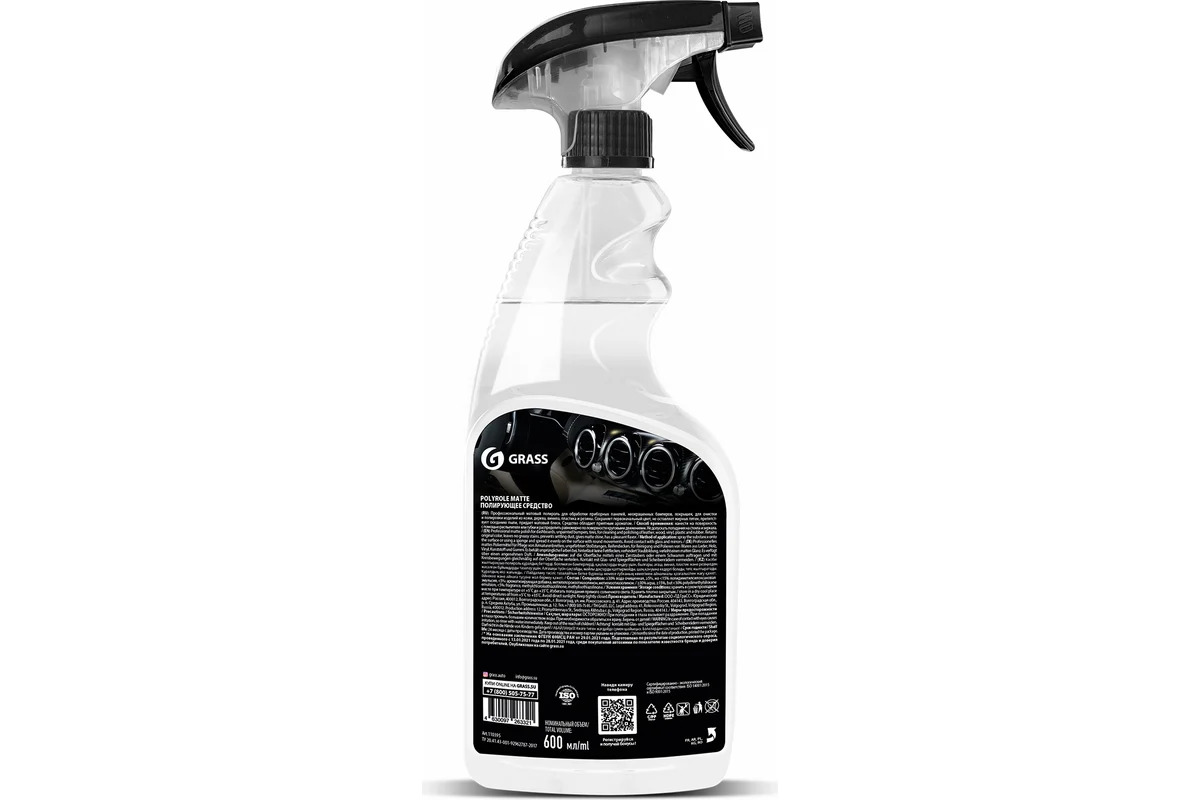 Полироль пластика Grass Polyrole Matte матовый, 600 мл 110395 предназначен для обработки пластиковых, кожаных, виниловых и деревянных поверхностей салона автомобиля. Эффективно очищает и полирует, не оставляет разводов и пятен, отталкивает пыль, придает матовый блеск. Средство имеет приятный аромат, применяется в готовым виде либо разводится водой в пропорции 1:1. Наилучшим образом подходит для приборной панели.