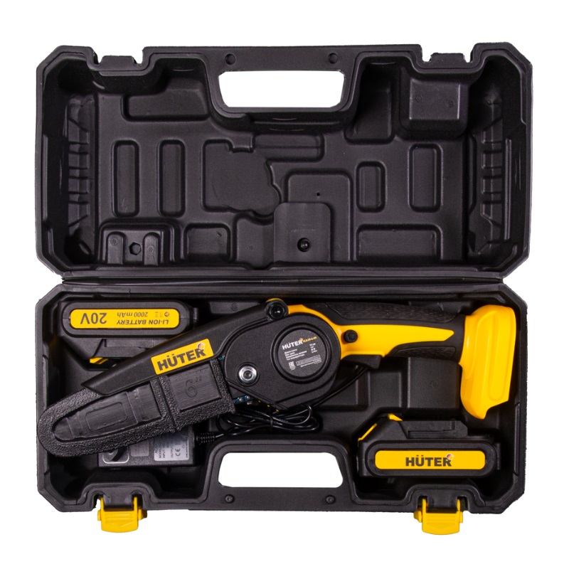 Электропила Huter ELS-20-Li-2К – надежный помощник во дворе частного дома или приусадебном участке. Может использоваться для поперечного или продольного распиливания бревен диаметром не более 100 мм. Аккумуляторная электрическая пила отличается мобильностью, поэтому хорошо подходит для спиливания веток, расчистки деревьев.Емкость батареи составляет 2 А*ч, поэтому можно работать без дополнительной зарядки продолжительное время. В комплект входит 2 аккумулятора, что позволяет пилить практически непрерывно. Электропила данной модели отличается высокой производительностью и способна пилить со скоростью 6,5 м/с. Комплектуется инструмент шиной длиной 150 мм (6 дюймов), поэтому не может использоваться для распиливания крупной древесины.Вес электрической пилы всего 2,8 кг, поэтому ею комфортно работать продолжительно время в любых условиях. Корпус Huter ELS-20-Li-2К изготовлен из прочного пластика. Инструмент имеет эргономичную ручку, а защитный кожух обеспечивает безопасность во время эксплуатации и предупреждает по