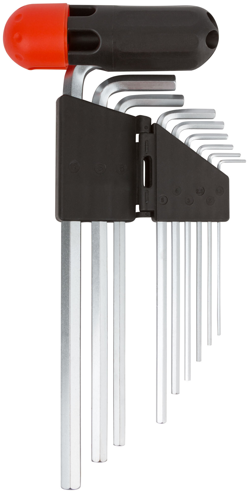 Набор шестигранных ключей FIT IT 64197 применяется для ремонта резьбовых соединений размером до 10 мм. Все ключи выполнены из высокопрочной стали с матовым хромовым покрытием. Данный набор состоит из девяти ключей и Т-образного держателя.