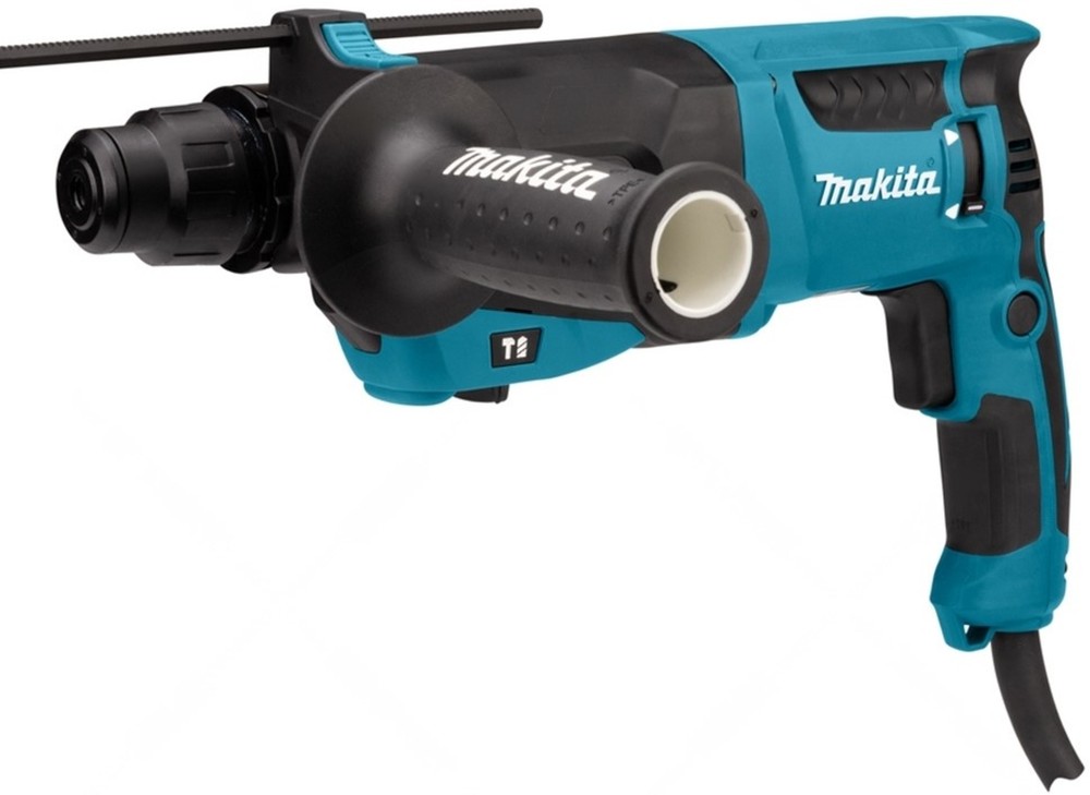 Предназначен для сверления, сверления с ударом и долбления (три режима) в таких материалах как бетон, природный камень, дерево, металл. У перфоратора отсутствует удар на холостом ходу, он имеет электронную регулировку числа оборотов двигателя, предохранительную (расцепную) муфту, обрезиненный корпус редуктора и антивибрационную боковую рукоятку.Сила удара согласно измерениям Makita – 2,4 Дж.Данные стандарта ЕРТА – 2,9 Дж.