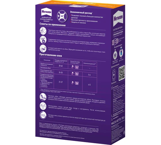 ХЕНКЕЛЬ Обойный клей Метилан Универсал Премиум (150г) 1430092предназначен для наклеивания всех видов бумажных обоев: гладких, структурных, гофрированных, дуплексных, тяжелых, также подходит для виниловых и других специальных обоев. Высококачественный, быстрорастворимый клей на основе модифицированного крахмала. Содержит бактерицидные и противогрибковые добавки, предотвращающие первичное образование грибка.