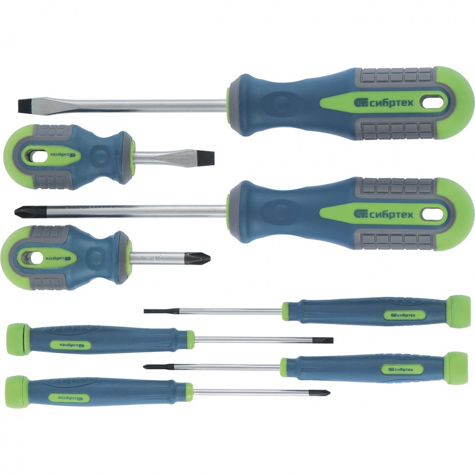 Универсальный набор отверток Сибртех 13375 включает 8 предметов из стали CrV с трехкомпонентными рукоятками, рассчитанных на бытовое использование. Отвертки предназначены для монтажа/демонтажа стандартных крепежных элементов и микровинтов с профилем SL и PH. Длина стержней 38-100 мм позволяет работать в узких пространствах и небольших углублениях.