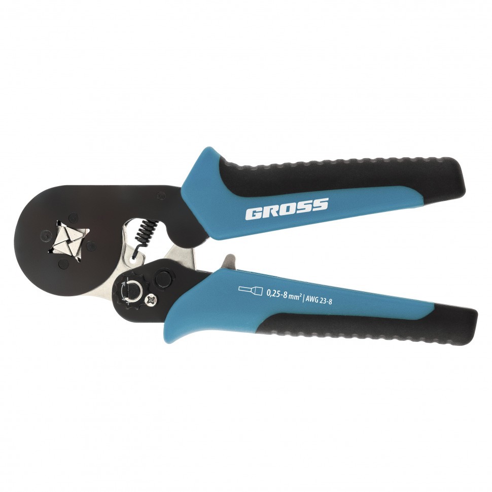 Пресс-клещи Gross 17724 используются для обжима наконечников электропроводов с сечением 0,25-8 м2. Позволяют добиться качественного соединения проводов при подключении бытовых приборов и электрооборудования. Клещи с автозажимом значительно повышают скорость работы, пригодятся в быту и профессиональной сфере.