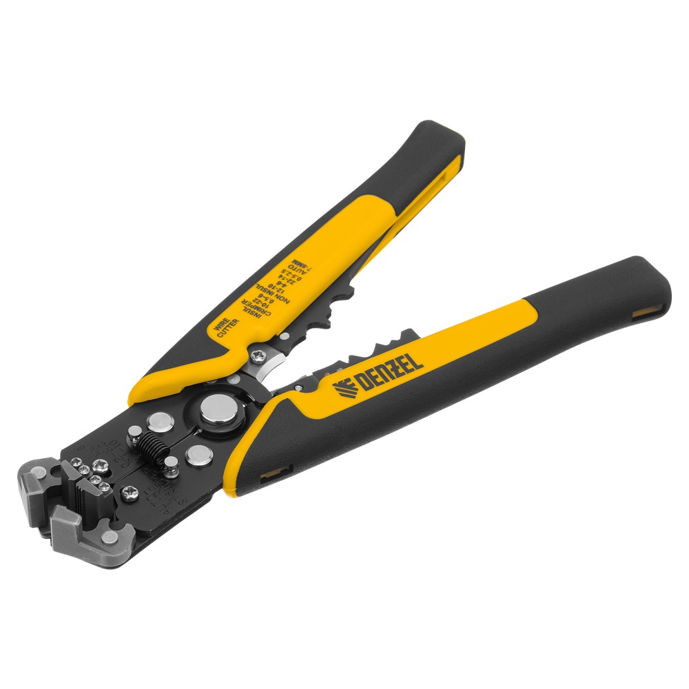 Щипцы для зачистки электропроводов Denzel 17742 пригодятся для бытового и профессионального применения при выполнении электромонтажных работ с проводами сечением 0,2-6 мм2 (10-24 AWG). Инструмент позволяет работать с проводами различного диаметра без необходимости дополнительной регулировки инструмента.Модель оснащена функцией перерезания проводов (лезвия из нержавеющей стали). Инструмент оснащен пружинами (функция авторазжима) для удобства в работе. Нет необходимости регулировать инструмент в зависимости от диаметра провода. Двухкомпонентные рукоятки.