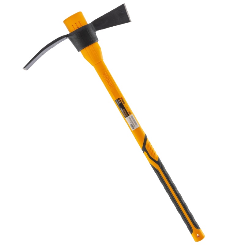 Кирка-топор Denzel 21837 длиной 900 мм, с головой весом 2250 г и фибергласовой обрезиненной рукояткой, предназначена для земляных работ и демонтажа деревянных конструкций. Подходит для рыхления каменистого, пересохшего земляного и глиняного грунта. Также может использоваться для разрушения старой кирпичной кладки и колки льда. Инструмент будет полезен на строительной площадке и дачном участке.