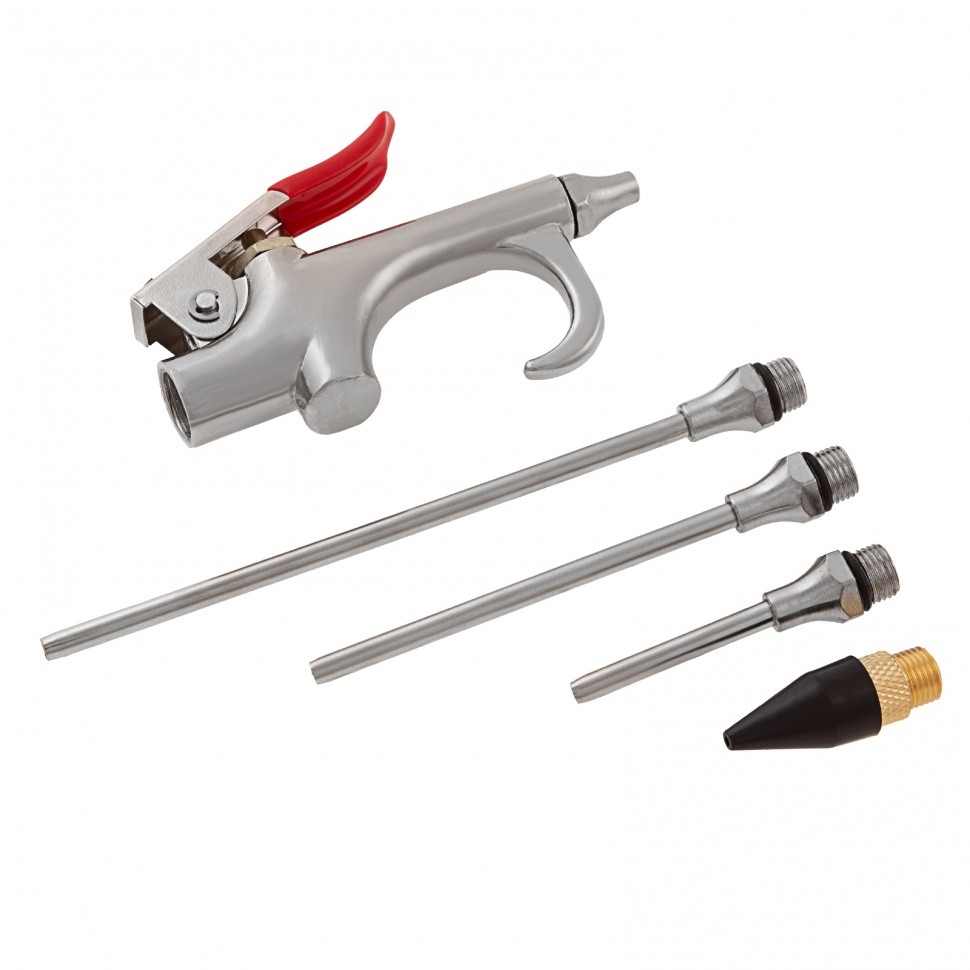 Набор Matrix 57338 включает в себя пневматический пистолет и 4 сопла для продувки как маленьких, так и глубоких отверстий а также больших поверхностей. Струя сжатого до 6 бар воздуха выходит со скоростью до 400 л/мин, что позволяет использовать пистолет в быту, во время ремонта и строительства, в автосервисах и небольших мастерских. Благодаря низкой пожаро- и взрывоопасности пневматический пистолет можно эксплуатировать во влажных помещениях.