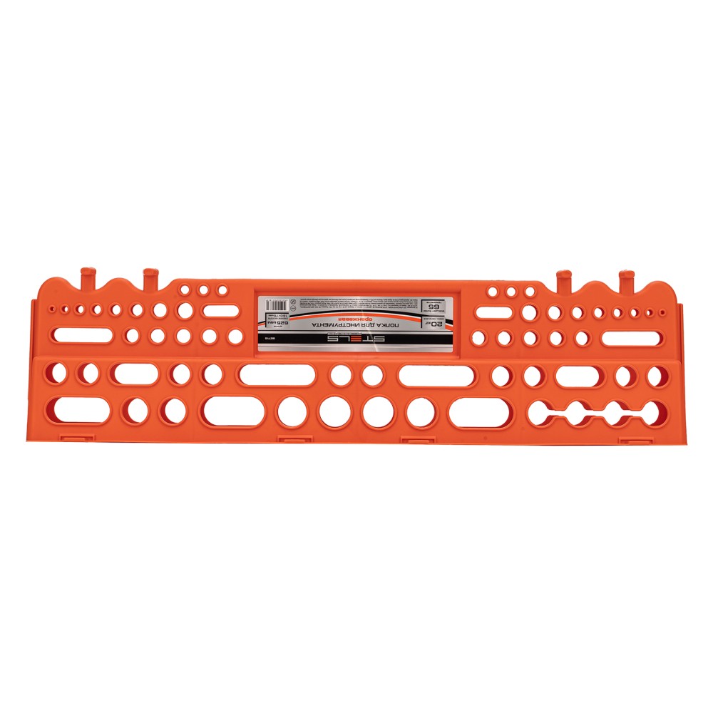 Оранжевая полка Stels 90715 длиной 625 мм позволяет организовать место для практичного и компактного хранения инструментов. На ней можно разместить рабочий инвентарь и всегда держать необходимые предметы под рукой. За счет настенного крепления полка обеспечивает возможность подвесного хранения.