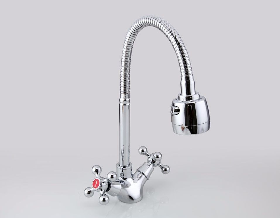 Смеситель для кухни с гибким изливом Frap F4319, имеет два рычага для того, чтобы регулировать напор воды. Наличие аэратора в смесителях позволяет обеспечить равномерный поток воды и ее смягчение. Сетка в устройстве отфильтровывает разнообразные примеси. Прибор устанавливается при помощи гайки, нижняя часть корпуса смесителя вставляется в специальное отверстие для монтажа и с обратной стороны затягивается гайкой для фиксации. Классика – это то, что уже проверено временем. К данному типу смесителей относятся функциональные, красивые, надежные моделис традиционным оформлением. Смеситель производится из силумина, это не такой надежный материал, в отличии от прочих. В основном представленную модель приобретают на кратковременное пользование. Служит около 2-5 лет. Излив представленной модели наделен эффектом памяти. По ходу движения излива на нужное расстояние в любой плоскости фиксируется его положение. В данном приборе излив имеет возможность вращения, что повышает практичность. Данный смеситель оснащен керамиче