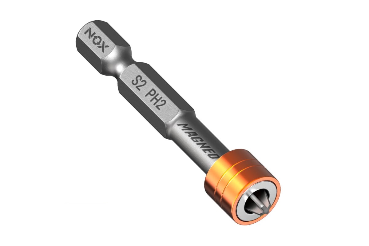 NOX MAGNEO - специальная бита с магнитной насадкой для удержания крепежа. Тип шлица PH2, длина биты 50 мм.Мощный неодимовый магнит обеспечивает надежное удержание крепежа длиной до 150 мм.Шестигранный хвостовик исключает прокручивание оснастки в патроне электроинструмента.Насадка обеспечивает чистую рабочую часть биты, металлическая стружка не налипает на шлиц - это обеспечивает максимальную площадь контакта биты и шурупа, что увеличивает ресурс биты.