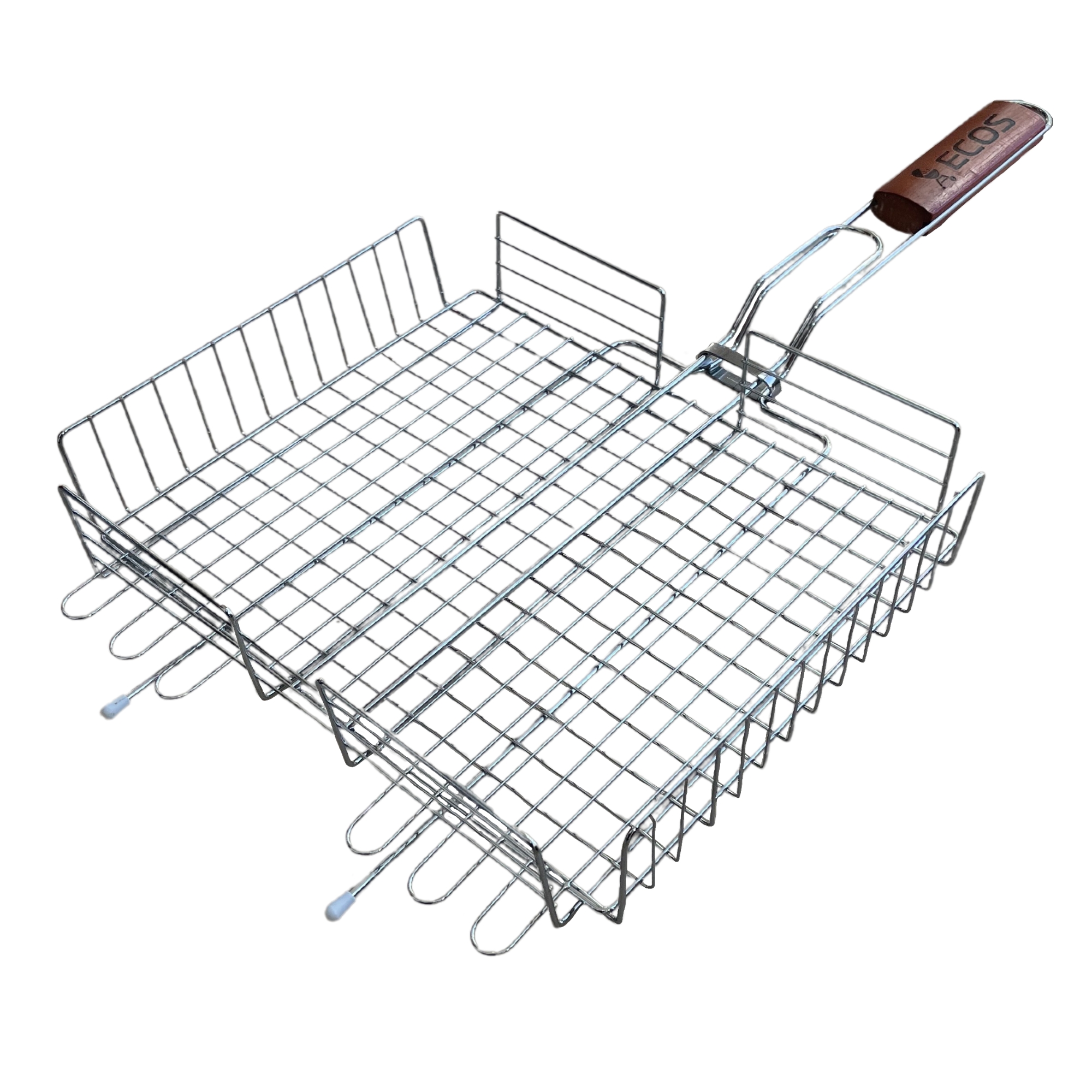 Решетка для гриля глубокая размер 55(+4)х31х24х5,5см., толщина проволоки - 3,6*2,4*1,4мм Материалы: решетка - хромированная сталь, деревянная рукоятка.