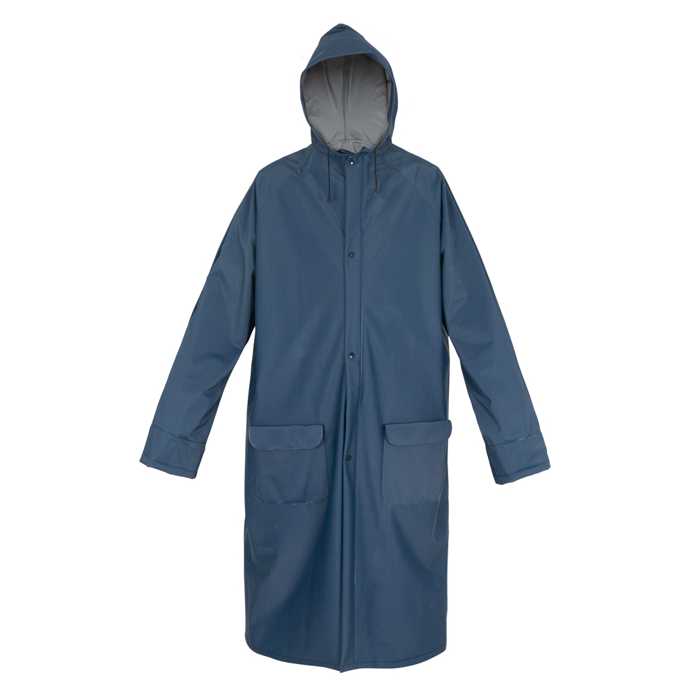 Дождевик Экстримальной прочности плащ - Дождевик двухслойный «EXTREME» синий+серебро ПВХ на молнии. Самый прочный дождевик из всей линейки дождевиков, которая представлена в нашем ассортименте. Толщина дождевика составляет 300 мкм. Материал плотный и хорошо тянется, внешне похож на тонкую резину. Дождевик двухслойный. Верхний слой синего цвета, нижний-серебро. Дождевик на молнии+ дополнительная защита кнопки, с карманами и резинками на рукавах.