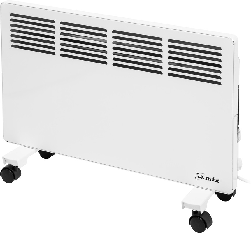 Электрический конвектор MTX км-2000.2, 230в, 2 квт, x-образный нагреватель, колеса, термостат 98126 предназначен для использования в закрытых помещениях: квартирах, офисах, загородных домах, на даче, на производстве и в общественных местах. Рекомендуемая площадь обогрева составляет 25 кв.м. Х-образный нагревательный элемент обеспечивает быстрый и равномерный прогрев помещения до необходимой температуры, при этом не сушит воздух.