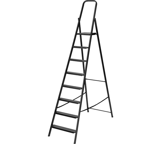 Стремянка применяется в быту, в строительной и коммунальной деятельности. Широкая рабочая площадка позволяет удобно стоять и выполнять работу. Ступени имеют специальное рифление, что снижает вероятность скольжения во время работы.