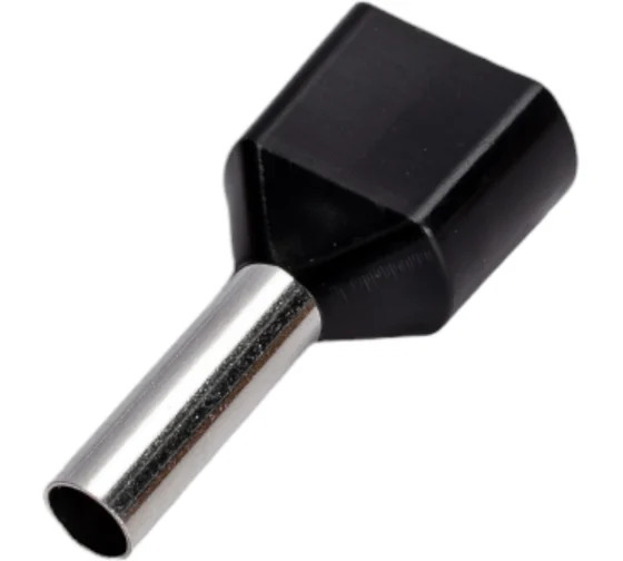 Наконечник штыревой втулочный изолированный (НШВИ F-8 мм) 2х1.5 мм² черный REXANT предназначен для создания быстрого и качественного подключения различного электрооборудования и монтажа электросетей. Такой современный способ подготовки кабеля к соединению заменяет процесс облуживания или скрутки многожильных медных проводов, формируя целостное окончание кабеля с последующим подключением промышленного или бытового электрооборудования. Втулочный наконечник состоит из латуни, с поверхностным электролитическим лужением, и рассчитан на монтаж 2 проводников с соответствующим сечением под опрессовку. Предварительно зачищенные жилы заводятся внутрь латунной втулки и обжимаются специальными пресс-клещами (ht-864 арт.12-3202, 12-3202-4; ht-866 арт.12-3205; ht8 6-4 арт.12-3106; ht-301E арт.12-3113, 12-3114, 12-3013, 12-3013-4) в считанные секунды. Для удобства заведения многожильных проводов внутрь латунной втулки предусмотрена манжета конической формы, изготовленная из поливинилхлорида (ПВХ), обеспечивающая надежную защиту соединения от влаги и других внешних воздействий.