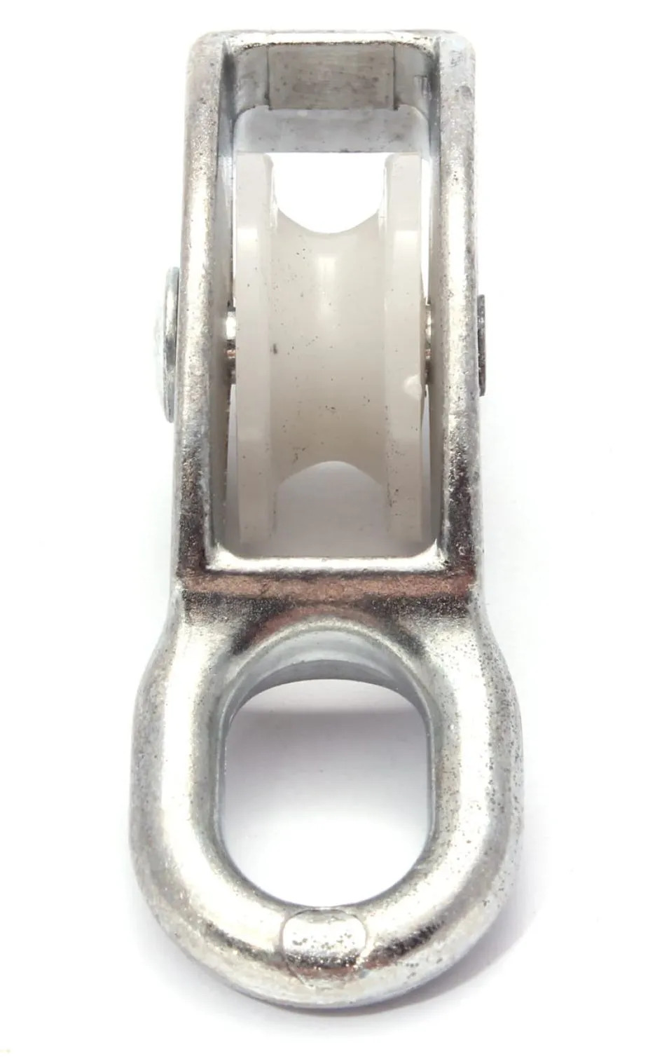 Одинарный такелажный блок 3/4" (20 мм) оцинкованный с пластиковым роликом - приспособление для увеличения тягового усилия грузоподъемных устройств и изменения направления движения троса. Имеет надежную конструкцию, рассчитанную на работу с тяжелыми грузами.