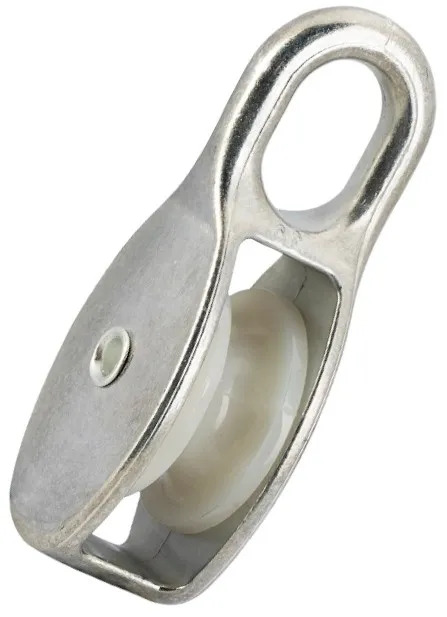 Одинарный такелажный блок 1/2" (15 мм) оцинкованный с пластиковым роликом - приспособление для увеличения тягового усилия грузоподъемных устройств и изменения направления движения троса. Имеет надежную конструкцию, рассчитанную на работу с тяжелыми грузами.