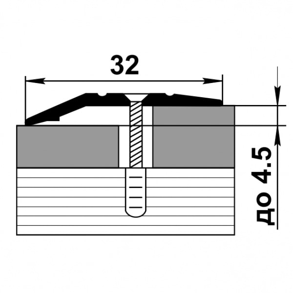 Профиль шириной 32 мм с тремя желобками. Допустимый уровень перепада до 4,5 мм. Предназначен для декоративной стыковки любых двух разноуровневых поверхностей.