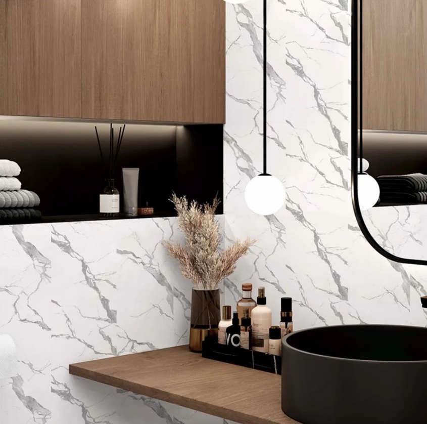 Панель изготовлена из ПВХ высшего качества, обладает толщиной 5мм и 100% влагостойкостью. Идеальное лаковое покрытие имитирует мрамор, позволяет сделать поверхность более глянцевой, устойчивой к выцветанию и появлению царапин.