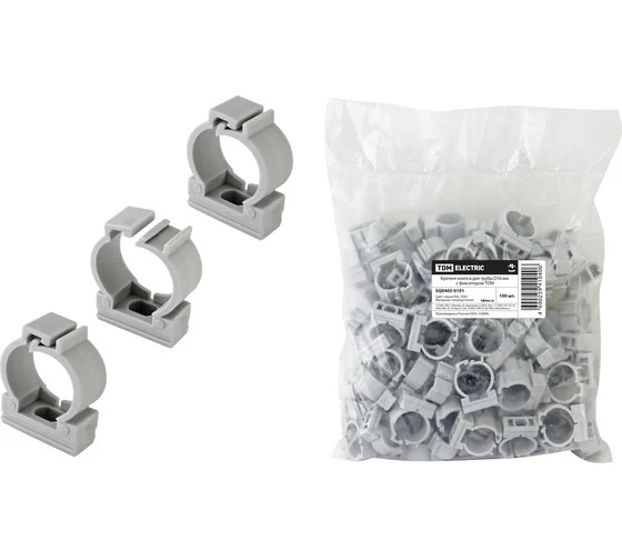 Крепеж-клипса для трубы D16 мм с фиксатором TDM ELECTRIC SQ0405-0101 служит для крепления и соединения гофрированных и гладких труб в систему коммуникаций, для жилых помещений (коттеджи, квартиры, дома, дачи), для объектов коммерческой недвижимости (гостиницы, офисы, торговые центры, общественные помещения), для объектов инфраструктуры (больницы, детские сады, школы).