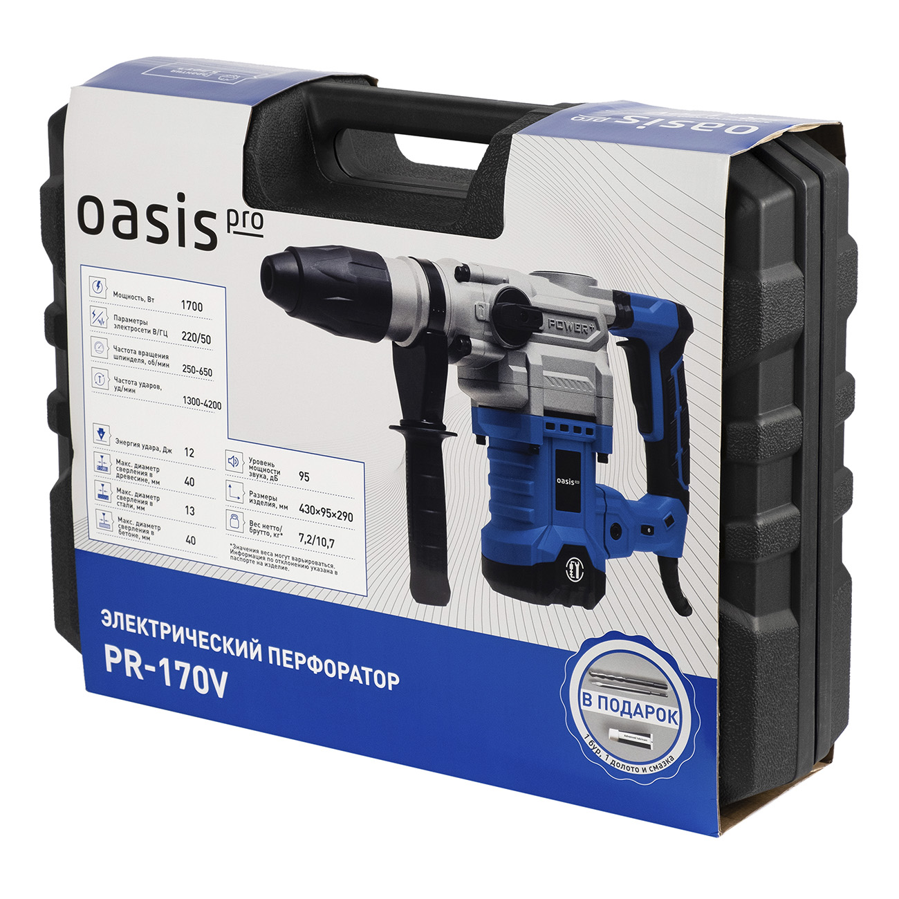 Электрический перфоратор Oasis PR-170V Pro представляет собой универсальный инструмент, предназначенный для сверления отверстий в различных материалах, включая древесину, металл и бетон. Благодаря своей мощности 1700 Вт и возможности точной настройки работы, этот инструмент становится незаменимым помощником в выполнении широкого круга задач. Комплектация и удобство использования. Перфоратор Oasis поставляется в комплекте с удобным ударопрочным кейсом, содержащим сверло, долото, ключ и смазку для бура. Эргономичный корпус и дополнительная рукоятка обеспечивают комфортное использование инструмента даже при длительной работе.
