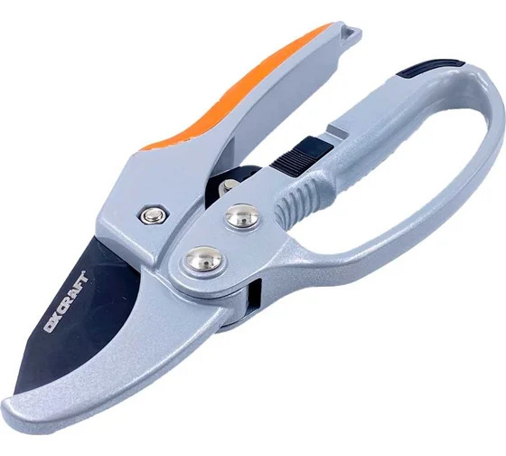Секатор с храповым механизмом OXCRAFT УТ-00013942 - простой и удобный в обращении режущий инструмент для ручной обрезки свежих побегов, тонких сухих ветвей деревьев и стеблей растений при уходе за садом. Тефлоновое покрытие увеличивает срок службы секатора. Эфес рукоятки защищает руку от травмирования.