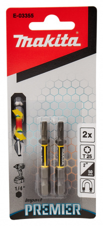 Бита Torx T25 из серии Makita XTT Impact Premier. Высококачественная ударная насадка, которая идеально подходит для ударных отверток благодаря чрезвычайно высокому крутящему моменту и идеальной подгонке. Имеет увеличенную зону кручения и изготовлен из более прочного стального сплава, чем биты Makita Impact Black и Impact Gold. Это делает биты пригодными для самых тяжелых операций и долговечностью в использовании благодаря антикоррозийному покрытию. Биты Impact Premier имеют цветовую маркировку. Это позволяет легко определить правильную биту для использования. Биты для ударной отвертки имеют гнездо E 1/4 дюйма длиной 50 мм. Две биты T25 в упаковке.