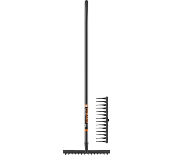 Грабли с черенком Чисто Быстро 1705-Ч FINLAND ПР2617 предназначены для уборки листвы, веток, мусора, а также для рыхления почвы. Широкие зубья надежно удерживают собранный мусор, позволяя убрать территорию за один проход.