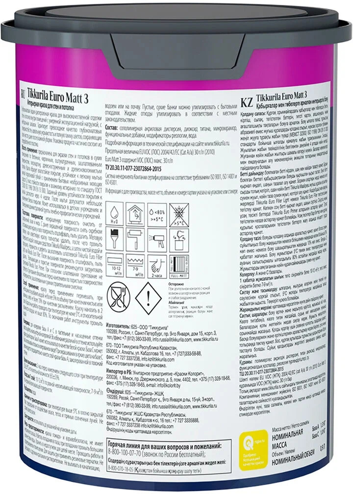 Предназначена для окраски стен и потолков в сухих помещениях по бетонным, кирпичным, оштукатуренным, зашпатлеванным поверхностям, гипсокартону, древесностружечным и древесноволокнистым плитам. Может использоваться в детских учреждениях и помещениях административной группы лечебно-профилактических учреждений.